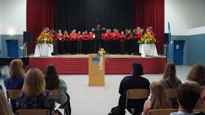Nach einem weiteren musikalischen Beitrag des Chors wurden die neuen Fünftklässlerinnen und Fünftklässler ihren Klassen zugeteilt. Gemeinsam mit ihren Lehrkräften erkundeten sie die Unterrichtsräume und hatten die Gelegenheit, erste Fragen zu stellen und sich kennenzulernen.